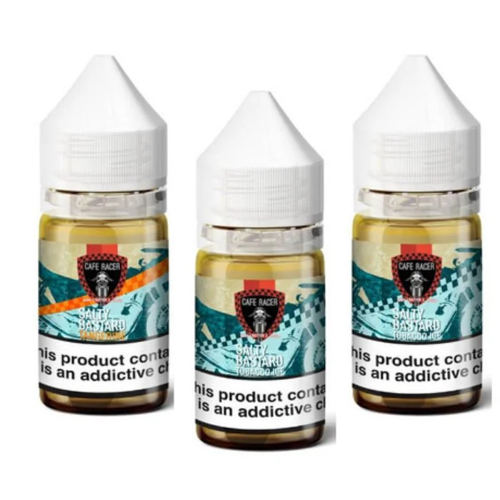 Experience the bold flavors of Cafe Racer Nicotine Salts, available in 30ml bottles and two nicotine strengths: 25MG and 40MG. Each flavor is carefully crafted to deliver a smooth and satisfying vaping experience, perfect for vape store and wholesale customers. Flavors: Tangerine Salty Bastard – A zesty blend of fresh tangerines with a touch of salt for a sweet and tangy vape. Tobacco Ice Salty Bastard – Classic tobacco flavor with a refreshing menthol twist, offering a cool, crisp finish. Tobacco Salty Bastard – Rich and earthy tobacco flavor, delivering a smooth and authentic taste for tobacco enthusiasts. Cafe Racer Nicotine Salts deliver a premium vaping experience, perfect for those seeking high-quality nicotine salts in bold, well-balanced flavors.