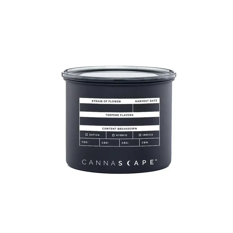 The CANNASCAPE® Classic 4” White Stash Jars are the VIP treatment your flowers (up to 2 ounces) deserve. Designed to keep your buds fresh with a touch of class, these jars use our patented tech to kick out excess oxygen and block out light. Why? To create a primo environment that protects your precious cannabinoids and terpenes—basically, the magic that makes your strains taste, smell, and feel awesome. Because let’s face it, you’ve got some serious love and care invested in that good stuff. But hey, we’re not just about the science. We know looking good matters too. That’s why our Classic Matte Stash Jars are made of 18/8 restaurant-grade stainless steel with a sleek matte finish and a smoked, airtight lid. Plus, there’s a writable strain info table so you can ditch the label and keep track of strain names, harvest dates, terpene flavors, percentages, and content breakdowns. Upgrade your stash game with Argon Gas and a Boveda® pack to turn your storage from “meh” to “heck yeah!”