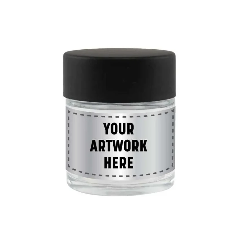 Wholesale/Products/1 oz Clear Glass Jar With Matte White or Black Child Resistant Lid With Labels & Application