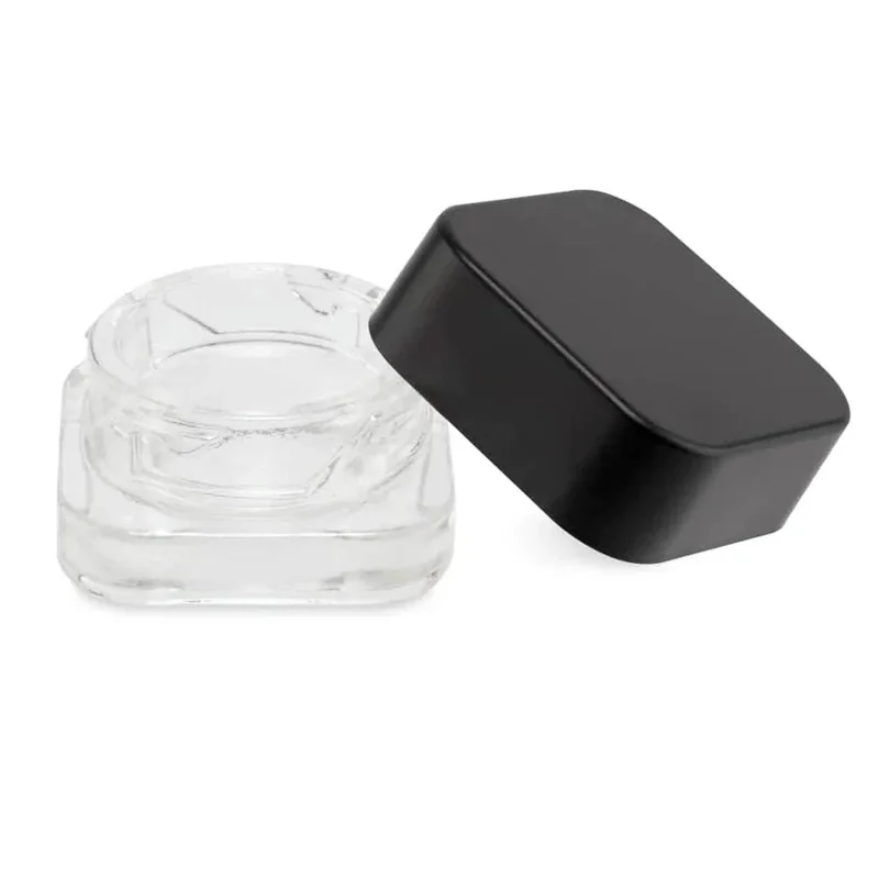 The square shape makes bulk packaging much easier, because the jars fit flush along the sides of whatever box they’re being transported in. It also provides more surface area than a round jar, making labeling and custom branding a breeze. The lid complements any brand colors and provides a child proof closure that is compliant with all state guidelines. Push the cap down and twist to unlock. The 5ml clear glass jar can hold up to 1g of concentrate. Made of thick, durable borosilicate glass, the clear glass allows you to see exactly what is packed inside. This allows the customer to get a glimpse at the precious nectar without even needing to open the container. The thick glass is highly resistant to shattering, and the jar can be reused countless times by the customer. These flat, compact concentrate storage jars are available in a 250ct bulk box. SQUARE | The square shape gives the product an attractive look with a quality feel. These jars are easier to package in bulk because they fit better into a box, and provide more surface area for labels and custom branding. CLEAR GLASS | The jar is made of clear, durable borosilicate glass. This allows the customer to see the wax inside the jar without needing to open the container. The strong glass is very shatter resistant. CHILD PROOF | The square lid has a child proof closure that is compliant with all state guidelines. Push the lid down and twist to unlock and open. 5ML JAR | This square clear glass jar and lid have a total capacity of 1 gram of concentrates. The jar can be reused countless times by the customer once their initial gram is gone. 250CT BULK | These jars are available in bulk. This product includes 250 individual square clear glass jars with child proof lids. Lid is 1 and 5/16th" across. Largest label size is 1.125"