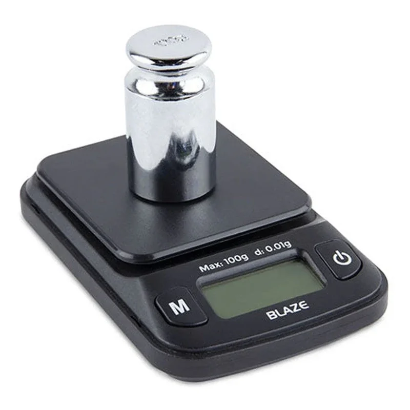 MSRP $9.99 The BLAZE digital mini scale features a slick, compact design that allows it to easily slide into a pocket, purse, or backpack. The hard plastic cover keeps the precision weighing sensor protected while not in use, and doubles as an expansion tray. Results are easy to read on the green back-lit LCD in any lighting condition. This scale is ideal for arts and crafts, hobbies, cash and carry stores, headshops, numismatics, and science and education uses. Built-in overload protection helps prevent damage to the scale. Other features include power-saving Auto-Off after 3 minutes of inactivity, Tare/Zero feature for subtracting the weight of a container or expansion tray, and easy one-touch calibration. Includes two AAA batteries. Backed by a Ten Year Limited Warranty. Truweigh: Quality You Can Measure. Features: Max Capacity: 100g / Readability: 0.01g Easy One-Button Calibration Tare/Zero Convert Automatically Between: g, oz, ozt, dwt, ct, gn Built-in Overload Protection Backlit LCD for easy reading Power-Saving Auto-Off (180 sec) Weight: 0.1698 lbs Includes: Blaze Digital Mini Scale User Manual Cover/Tray Two AAA Batteries