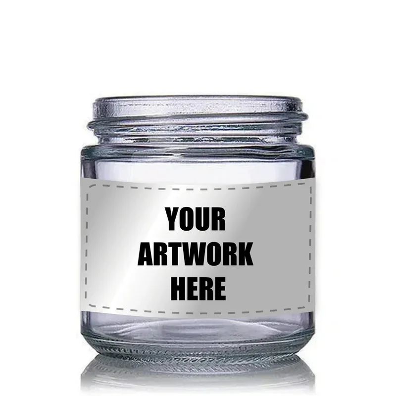 Label Sizes: 6.75" x 1.5" for around the jar 1.75" Circle for lid Labor is expensive, automate your branding with our machines! We Supply the Container We Supply the sticker We Apply the sticker The jar is a 3 oz clear glass straight-sided round jar with a 53-400 neck finish. Straight-sided jars have a wide mouth, thick walls, and a relatively square base. They are simple, elegant, and look great with a label or silk print. Glass has high clarity, can be colored, has high chemical-resistance levels, and has extremely high resistance to heat and cold. It is great for storing essential oils. This container is clear, making it an ideal display container for your product. This item has a 53-400 neck finish. The first number refers to the diameter (in mm), and the second refers to the closure depth, style and thread. The cap is a black PP plastic 53-400 smooth skirt lid with F217 liner. This closure includes an F217 foam liner, which will create an airtight seal when the lid is securely screwed on to the container. This lid is made of polypropylene (PP), which means it has a high heat tolerance level and an excellent resistance to fatigue. This closure fits a container with a 53-400 neck finish. The first number refers to the diameter of the container's opening (in mm). The second number refers to the thread/style/depth of the closure's skirt. SPECIFICATIONS Color: Clear Size: 3 oz Material: Glass Size: 150 Diameter: 2.205 in Height: 2.365 in