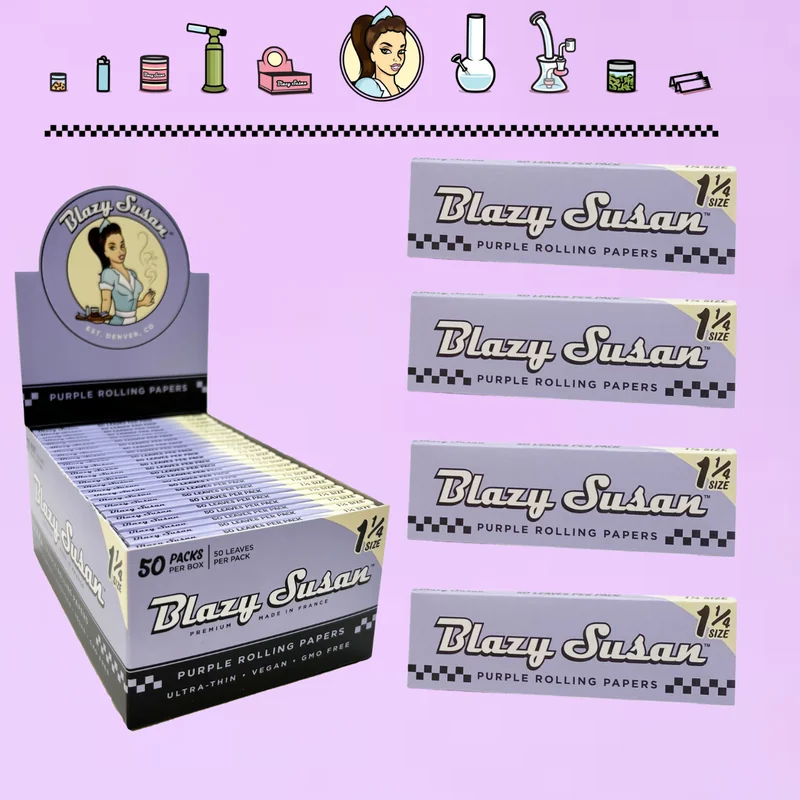 BLAZY SUSAN PURPLE EDITION 1 1/4 ROLLING PAPERS (50PK) Elevate your smoking experience with Blazy Susan Purple Edition 1 1/4 Rolling Papers. Crafted with quality in mind, these rolling papers offer a smooth and flavorful smoke every time. Each pack contains 50 rolling papers, providing you with plenty of supplies for your smoking sessions. Whether you're rolling up alone or sharing with friends, Blazy Susan Purple Edition Rolling Papers are the perfect choice for any smoking enthusiast. Premium