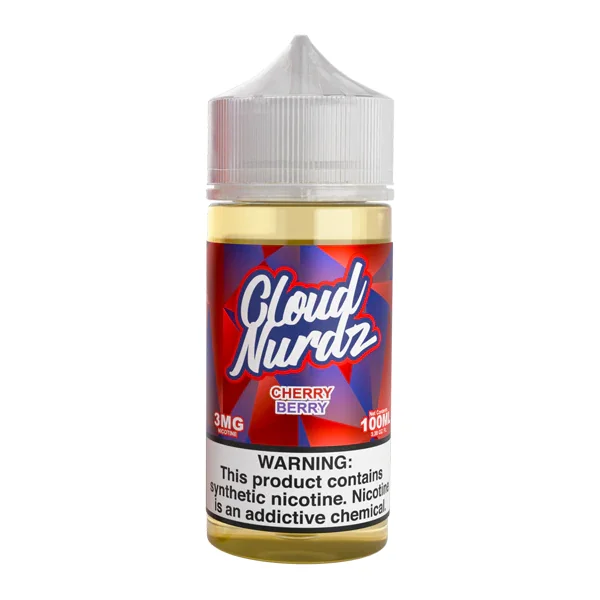 Freebase E-Liquid by Cloud Nurdz Flavor: The Cherry Berry Cloud Nurdz eJuice is a high VG vape juice and is perfect for cloud chasing with a blend of mixed berry and cherry flavors. E-Liquid Size : 100ml Nicotine Level : 3mg · 6mg VG/PG Ratio: 70/30 Browse more Wholesale Vape Juices