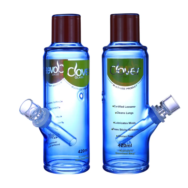 CLOVER PREMIUM GLASS 9" 420ML BOTTLES DESIGN BONG WATERPIPE (WP-577) The Clover Premium Glass 9" 420mL Bottles Design Bong Waterpipe (WP-577) is a stylish and high-performing glass piece that combines functionality with creativity. Made from thick, durable borosilicate glass , this 9-inch waterpipe delivers smooth, filtered hits while showcasing a unique 420mL bottle-inspired design — blending art, innovation, and smoking efficiency in one. Engineered for clean airflow and consistent performance