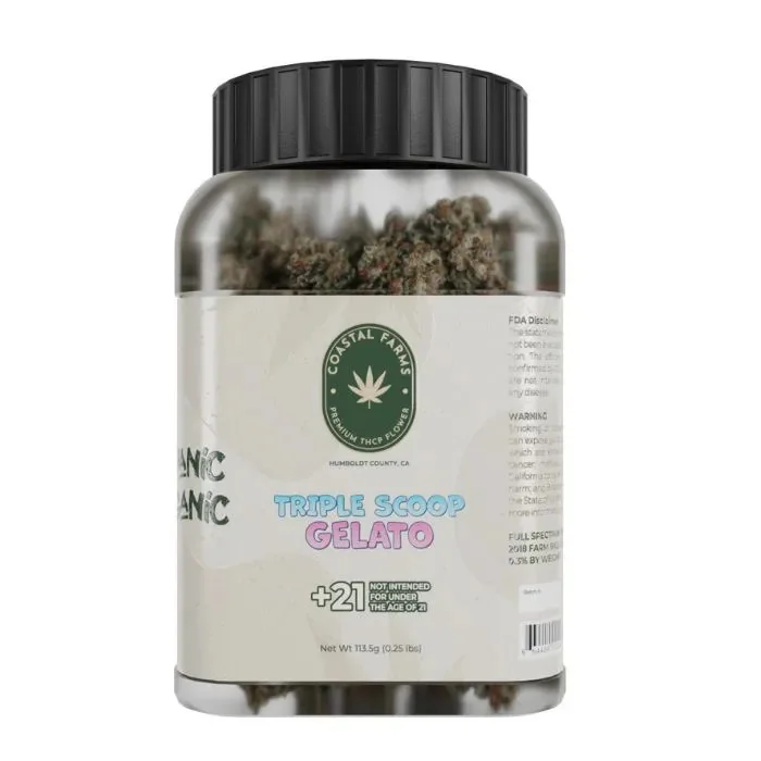 Experience premium THC-P flower with Coastal Farms' expertly cultivated strains. Packed in a 4oz jar, each strain delivers potent effects and bold flavors. Coastal Farms THC-A Flower Flavors: Bubblegum Runtz – A sweet and fruity blend with candy-like flavors and a euphoric high. Girl Scout Cookies – A classic hybrid with earthy, sweet notes and a deeply relaxing buzz. Runtz – Tropical and creamy, this balanced hybrid offers smooth effects and rich flavor. Super Lemon Cherry Gelato – Zesty citrus meets sweet cherry in this flavorful, uplifting strain. Triple Scoop Gelato – Creamy, dessert-like flavors with a smooth, euphoric finish. Enjoy top-tier potency and exceptional terpene profiles with every jar.