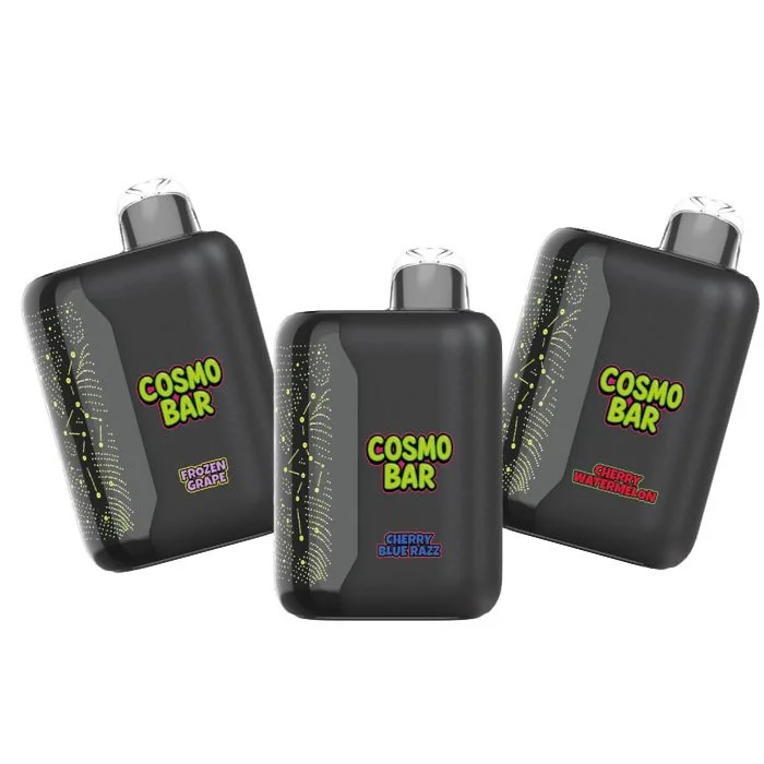 Cosmo Bar 50K Disposable Vape delivers up to 50,000 puffs of smooth, long-lasting performance in a sleek, high-capacity disposable. Designed for vape shops and wholesale buyers, Cosmo Bar offers consistent flavor output, strong vapor production, and reliable battery life, perfect for high-demand customers seeking premium disposable vapes with bold flavor options. Available Flavors: Blue Rancher – Sweet blue candy notes with a tangy finish. Blueberry Blackberry Raspberry – A rich mixed-berry blend with deep, juicy sweetness. Blueberry Watermelon – Smooth blueberries layered with refreshing watermelon. Cherry Blue Razz – Tart blue raspberry balanced by sweet cherry. Cherry Watermelon – Juicy cherries fused with crisp watermelon. Energy Shot – Bold, sweet energy drink flavor with a light citrus kick. Frozen Grape – Icy grape with a clean, cooling exhale. Miami Mint – Refreshing mint with a smooth, cool profile. Mexican Mango – Ripe mango flavor with tropical sweetness. Pink & Blue – Sweet candy blend with fruity, nostalgic notes. Sour Blue Raspberry – Sharp sour blue raspberry with candy undertones. Sour F*cking Fab – Intense sour candy flavor with bold sweetness. Sour Straws – Classic sour candy taste with a fruity punch. Watermelon Ice – Crisp watermelon finished with a cool menthol breeze. White Peach Raspberry – Soft white peach blended with bright raspberry.