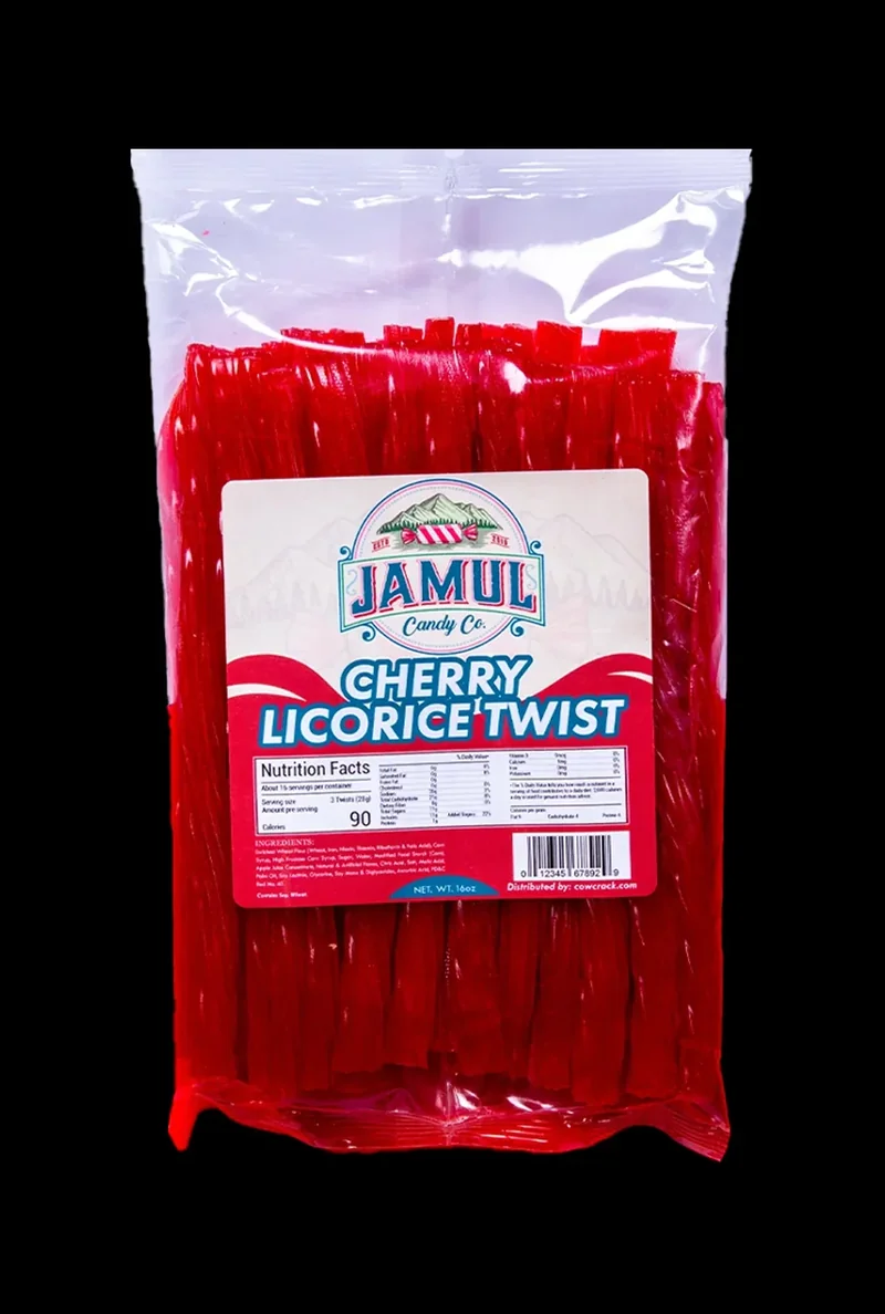 The Jamul Candy Co. Cherry Licorice - 16 oz. is a confection composed of a chewy, extruded licorice base infused with natural and artificial cherry flavoring, resulting in a distinctly sweet and slightly tart taste experience. Unapologetically Delicious Cherry Licorice This stuff is legit. The Jamul Candy Co. Cherry Licorice is a masterclass in balance - solid cherry flavor and that classic licorice chew that you'll be coming back to again and again. It's not over-the-top, it's just... good. Satisfy Your Cravings A 16-ounce package is a lot of candy, and that's the point. You'll have plenty to munch on, whether you're looking to share or not. The individually wrapped pieces make it easy to indulge in just one (or not). Treat Yourself Sometimes, you just need something sweet. This cherry licorice delivers. Grab a bag and enjoy the simple pleasures - no guilt, no fuss. The generous quantity ensures you'll have a steady supply of satisfaction.