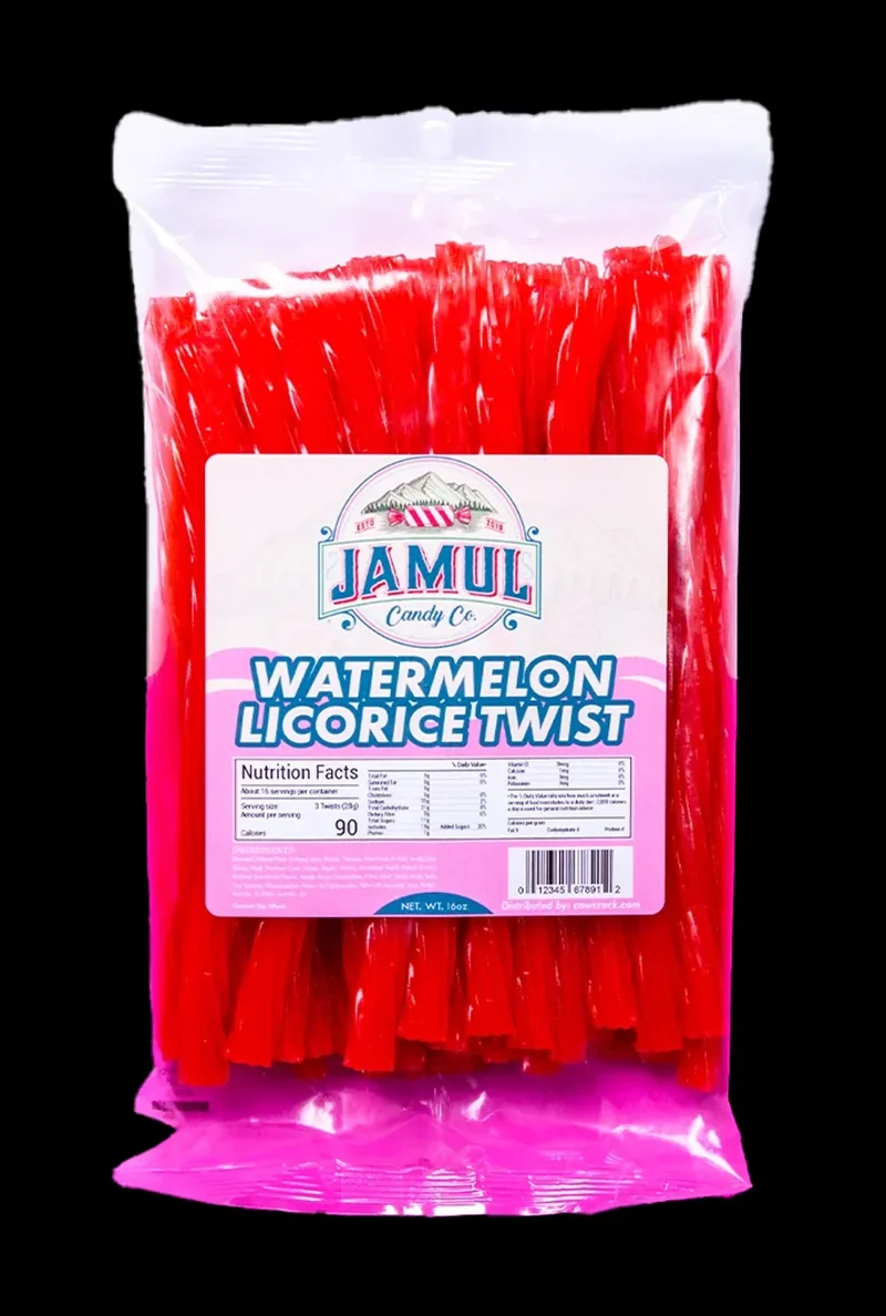 Unrealistically Good Watermelon Licorice The Jamul Candy Co. Watermelon Licorice - 16 oz. is a ridiculously awesome confection composed of a chewy, elongated strand of licorice flavored with the sweet, refreshing taste of watermelon. No Frills, Just Good Stuff This 16-ounce package of Jamul Candy Co. Watermelon Licorice is straight-up great. It’s not fancy; it’s just a big ol' bag of chewy, red, watermelon goodness. The satisfying texture offers a pleasant, slow chew that’s perfect for when you need something to do with your hands or just wanna chill. Licorice That Hits The Spot The flavor is consistent throughout, and the chew is on point. These guys at Jamul Candy Co. nailed it. They made a big bag of watermelon licorice that’s enjoyable, and that’s what matters. Stock Up and Enjoy Grab this 16oz package of Jamul Candy Co. Watermelon Licorice and indulge in the bold, sweet, and refreshing taste. It pairs nicely with pretty much everything, so go ahead and get your snack on!