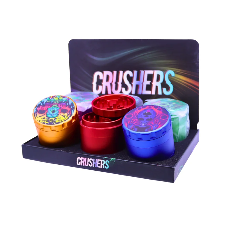 The Crushers Premium 4 Parts 43mm Grinder is a compact yet efficient solution for all your grinding needs, available in assorted designs to cater to diverse preferences. Its 4-part construction includes grinding chambers, a pollen catcher, and a storage compartment, ensuring smooth and consistent grinding. The 43mm size makes it perfect for on-the-go use, while the display of 6 is ideal for retailers looking to stock a versatile and stylish product. Features: 43mm Size: Compact and portable for