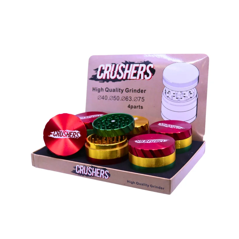 Add a splash of color and efficiency to your grinding experience with the Crushers Premium 4 Parts 48mm Grinder , featuring a vibrant Rasta design . This grinder is designed with a 4-part construction , including grinding chambers, a pollen catcher, and a storage compartment, ensuring a smooth and hassle-free grinding process. The 48mm size offers the perfect balance between portability and capacity. Packaged in a display of 6 , this grinder is ideal for retailers looking to offer stylish and re