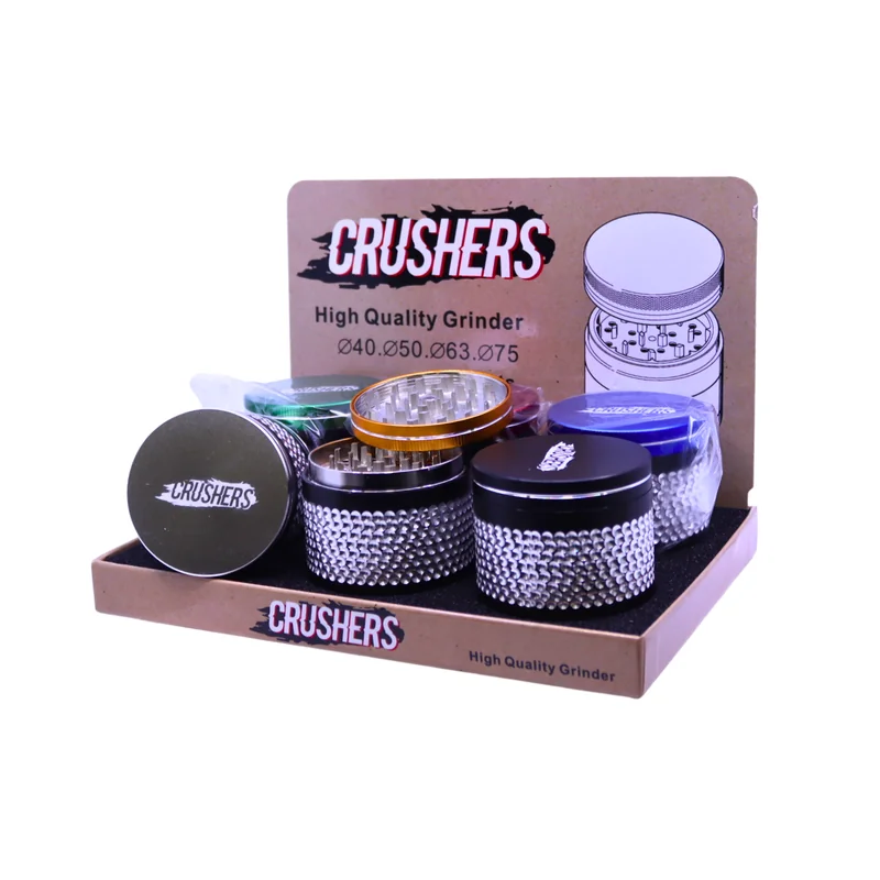 Upgrade your grinding game with the Crushers Premium 4 Parts 64mm Grinder , featuring a selection of assorted designs to suit any style. This grinder’s 4-part construction includes grinding chambers, a pollen catcher, and a storage compartment, ensuring smooth and efficient performance. The 64mm size offers ample capacity for both personal and professional use. Packaged in a display of 6 , these grinders are perfect for retailers seeking premium-quality products with eye-catching designs. Featur