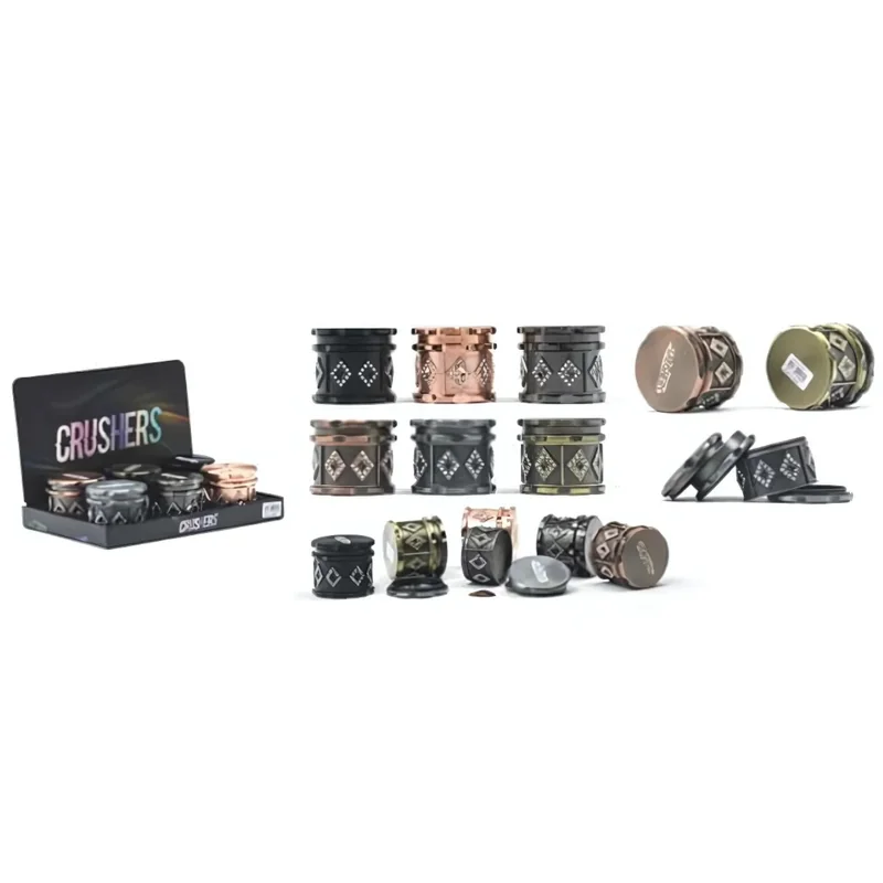 CRUSHERS PREMIUM 63MM 4 PARTS GRINDER DIAMOND DESIGN DISPLAY OF 6 (GR409) Elevate your grinding experience with the Crushers Premium 63mm Grinder , featuring a 4-part construction and an elegant diamond design . Built with sharp teeth for smooth and efficient grinding, this grinder also includes modern aesthetic. The 63mm size provides ample capacity for grinding, while the display of 6 is ideal for retailers seeking to stock high-quality and visually appealing products. Features: Diamond