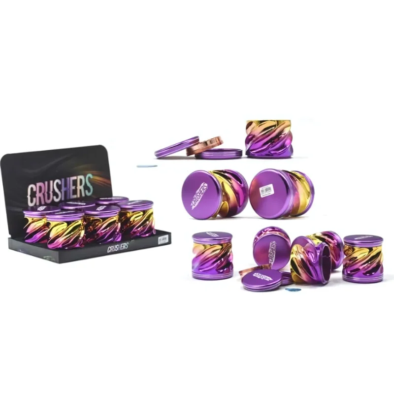 CRUSHERS PREMIUM 75MM 4 PARTS GRINDER TWISTED WAVE DESIGN DISPLAY OF 6 (GR405) The Crushers Premium LED 75mm Grinder offers a perfect blend of functionality and style. With a 4-part construction , this grinder is designed to deliver smooth and efficient grinding. Its larger 75mm size provides generous capacity for herbs, while the built-in LED lighting enhances visibility and adds a modern aesthetic. Ideal for personal use or retail, the display of 6 ensures this high-quality product stands out.