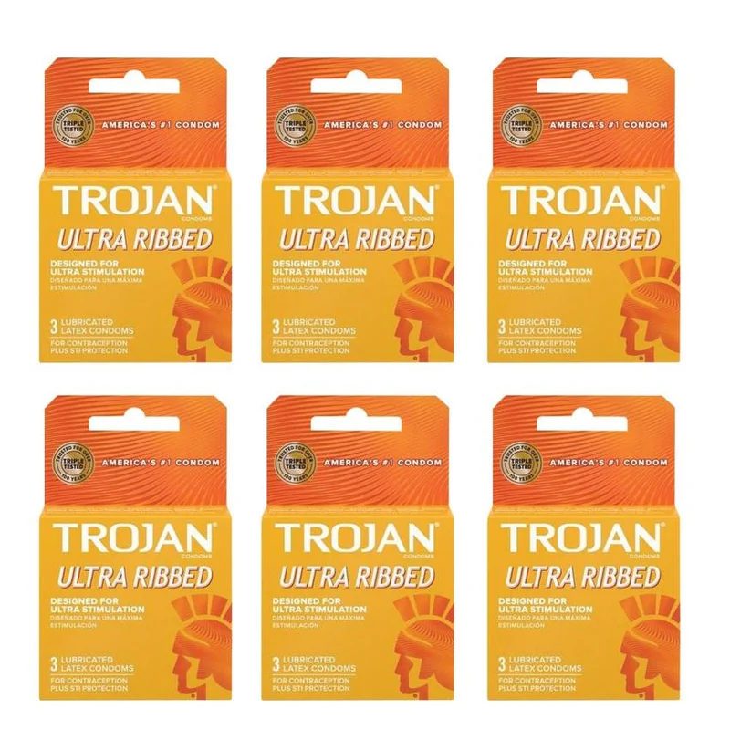 MSRP $4.99 Trojan Ultra Ribbed Lubricated Condoms 3 Count Pack Trojan Ultra Ribbed Lubricated Condoms are designed with extra ribs to enhance sensation while providing trusted protection. Made from premium latex and electronically tested for reliability and performance. This 3-count pack is ideal for retail resale in convenience stores, drugstores, and general merchandise locations. Product Details: Brand: Trojan Product Type: Condoms Style: Ultra Ribbed (Brown) Pack Size: 3 condoms Lubricated Latex material Individually wrapped Trusted protection with enhanced pleasure.