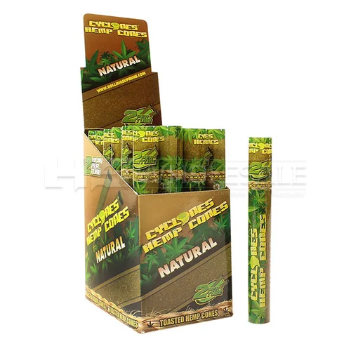 The Cyclones - 2 Hemp Cones Pouch - Display of 24 offers premium pre-rolled convenience. Comes in a quantity of display of 24. Suggested retail price $3.00. A consistent seller in any smoke shop's pre-roll section. Available at wholesale pricing from Port City Wholesale.
