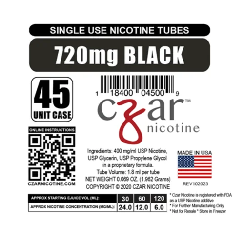 The Black Czar Nicotine Single Serve Tubes 720MG (Pack Of 45) is a premium smoking accessory. Comes in a quantity of pack of 45. Suggested retail price $182.99. Ships directly from manufacturer. Perfect for retail display and consistent seller. Available at wholesale pricing from Port City Wholesale.
