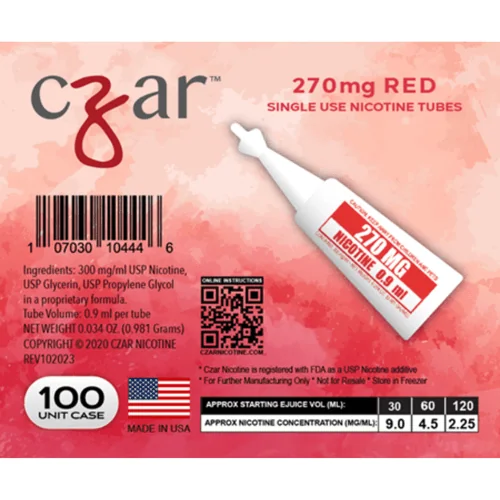 Get the Red Czar Nicotine Single Serve Tubes 270MG (Case of 100) from Czar Nicotine. Quality materials and thoughtful design deliver the performance you expect. A consistent seller and reliable everyday product. Size: 270mg. Suggested retail: $206.99.