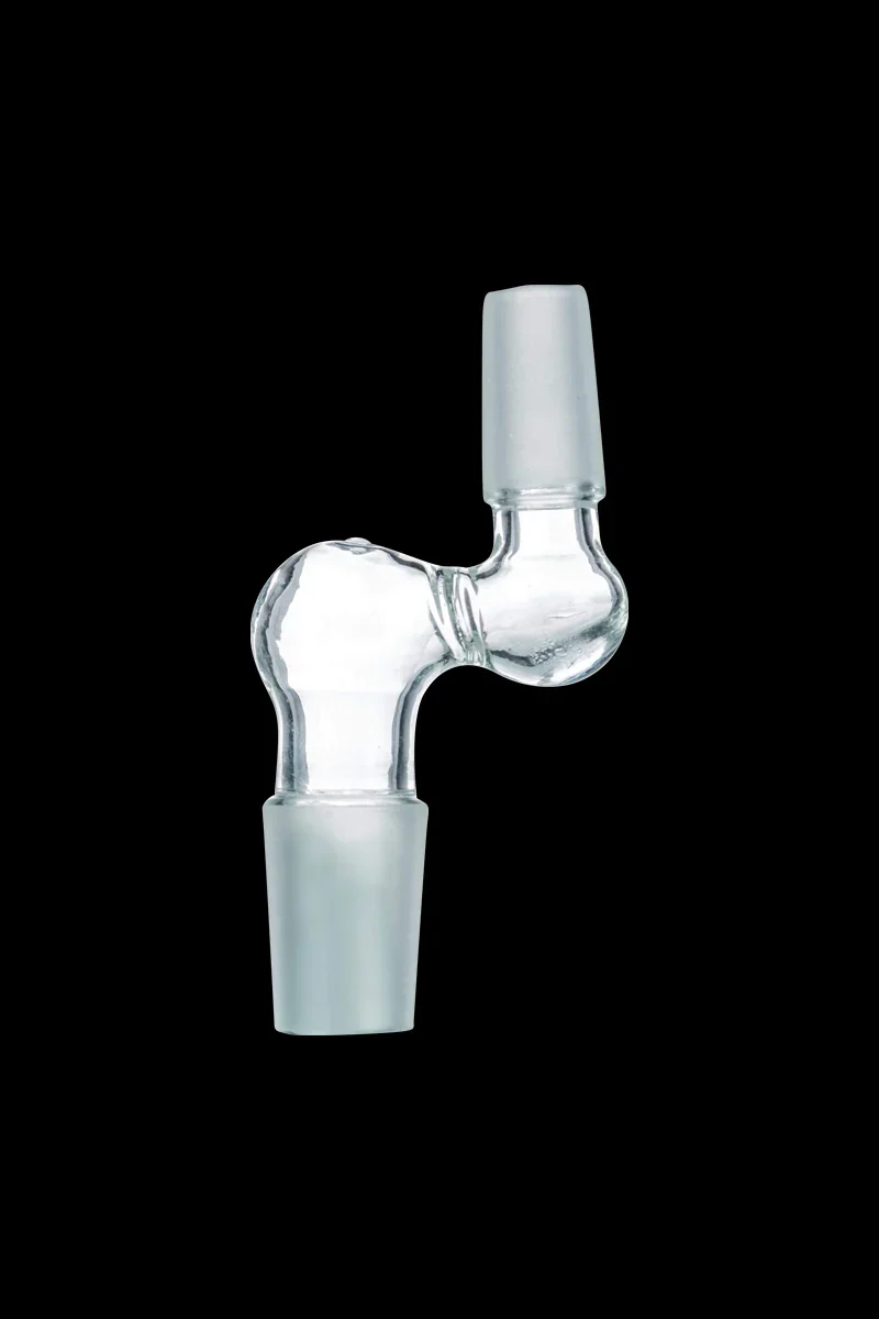 Have a female jointed water pipe but want to use a female jointed bowl or dome? The Step Up 90° Male to Male Adapter enables you to do so! With two male jointed sides, this glass adapter can turn your female jointed dab rig or bong into a male jointed one. Found a magnificent female jointed bowl you really want but your bong only takes male? Insert the Step Up 90° Male to Male Adapter and voila! Now you can use a female bowl on your female bong. There are three sizes to choose from, including one that not only turns your bong into a male joint, but also changes the size to 14mm or 18mm.