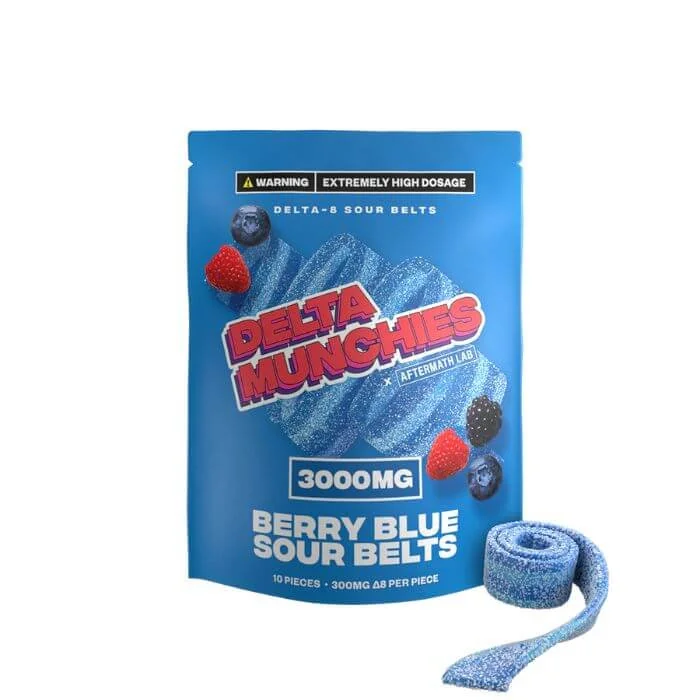 When we say these Sour Belts are seriously strong, we mean it. Their delicious flavor may entice you to slurp up the whole belt at once, but we highly recommend against doing that unless you’re an extremely experienced user. Instead, we recommend cutting your belt into 10 1-inch pieces creating 30mg bites, and properly dosing from there. Delta Munchies Delta 8 THC Gummies Sour Belts Includes: 10 Pieces.