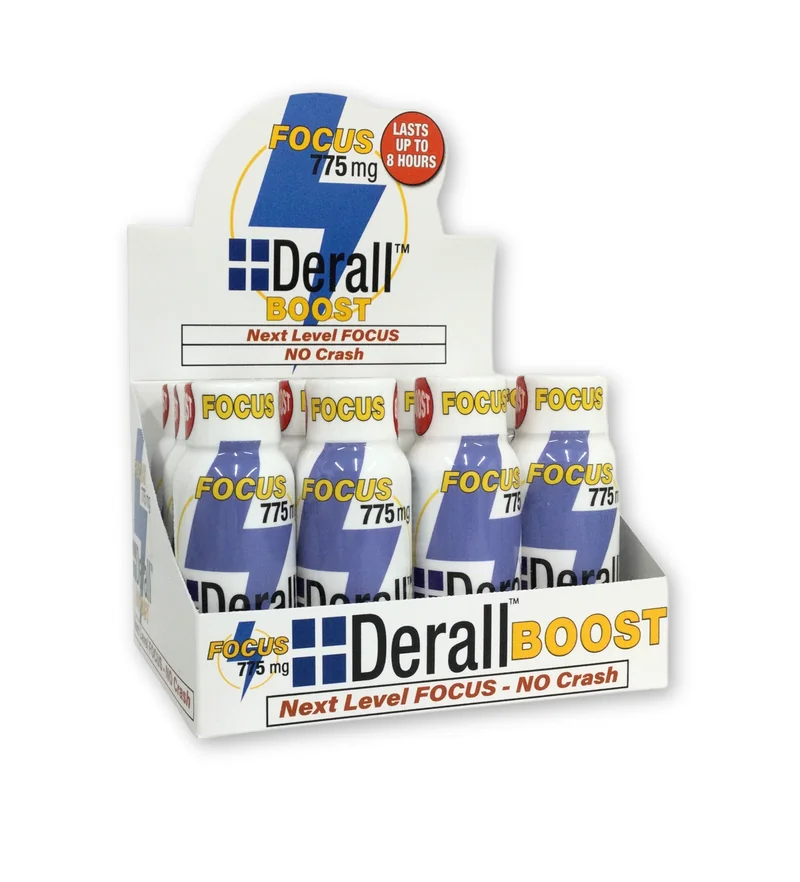 Boost Your Focus, Energy, and Mood. Whether you're a student, busy professional, or creative, the DERALL Nootropic Brain Booster is designed to help you stay sharp and energized. This powerful nootropic formula enhances mental clarity and focus, without the crash of traditional energy boosters. Perfect for long days and demanding tasks, it supports sustained productivity and improved mood, even when energy runs low. Derall 2 oz Shot Nootropic Brain BoosterA Focus-Enhancing Formula for Maximum Productivity Product SpecificationsDisplay: 12 unitsBottle Size: 60ml (2 servings)