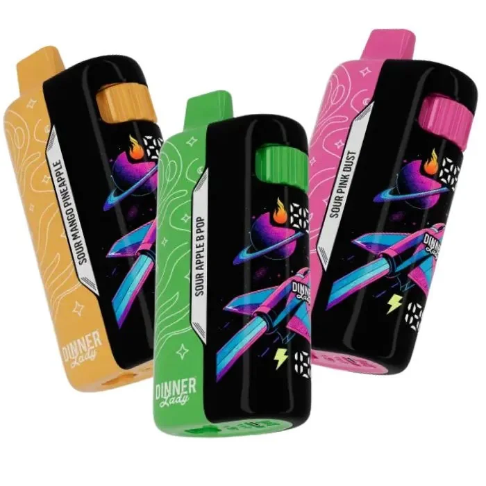 Texas compliant. Discover the new Dinner Lady 60K Vape, a high-performance disposable crafted for smooth, flavorful sessions. Designed for long-lasting satisfaction, each device delivers up to 60,000 puffs with a powerful battery, 50mg nicotine strength, and an ultra-smooth draw system. Perfect for vapers who crave rich flavor and consistent performance, the Dinner Lady 60K comes in a 5-pack display ideal for both convenience and variety. Flavors Available: Berry Candy – A burst of mixed berries wrapped in sweet candy goodness. Berry Cherry Lime – Tart lime balanced with juicy cherries and berries. California Cherry – Bold, sun-ripened cherry flavor with a smooth finish. Cherry Strazz – A fruity mix of cherry and strawberry for a tangy-sweet blend. Fab Blackberry – Sweet and slightly tart blackberry with a refreshing touch. Grape Bubblegum – Juicy grape meets nostalgic bubblegum sweetness. Miami Mint – Cool, crisp mint flavor with a tropical twist. Sour Apple B Pop – Tart green apple candy with a mouthwatering bite. Sour Mango Pineapple – Tangy mango blended with sweet, tropical pineapple. Sour Pink Dust – Sweet and sour pink candy explosion. Strawberry B Pop – Sweet strawberry candy flavor for all-day enjoyment. Ultimate Melon – Refreshing blend of honeydew and cantaloupe for a smooth finish. Experience bold taste, massive vapor, and premium quality with the Dinner Lady 60K Vape 5-Pack—crafted for those who love flavor that lasts.