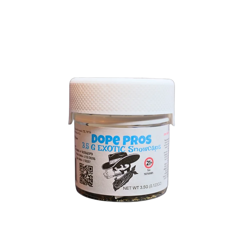 Dope Pros 3.5g Exotic THCa Flower brings top-tier exotic genetics in a premium eighth jar. Every batch features hand-selected buds with frosty trichome coverage and pungent terpene profiles across Sativa, Hybrid, and Indica assortments. Built for shops that want a step above the standard shelf — this is the flower customers ask for by name. Fully compliant with the 2018 Farm Bill — contains less than 0.3% Delta-9 THC. Third-party lab tested for potency, pesticides, and heavy metals.