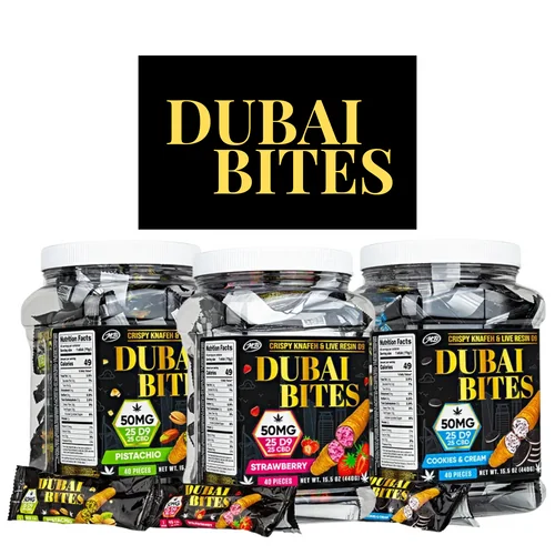 The Dubai Bites CBD+D9 50mg (Jar of 40) is a premium CBD and wellness product. Comes in a quantity of jar of 40. Suggested retail price $4.99. Ships directly from manufacturer. CBD continues to be a top-performing wellness category. Available at wholesale pricing from Port City Wholesale.