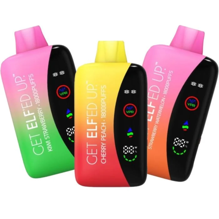 Buy 5 boxes get 1 box free + Swag Discover the ELF VPR 18000 Disposable Vape, a compact marvel engineered to deliver unparalleled vaping satisfaction. With an 18mL pre-filled capacity and an 800mAh battery, enjoy up to 18000 puffs of premium vaping delight. Its draw-activated operation and dual-mesh coils ensure rich flavor with every inhale. Customize your experience with the adjustable airflow switch and stay informed with the smart LED display, USB Type-C charging, and battery/e-liquid level indicators. With tantalizing flavors like Apple Black Ice and Rainbow Candy, the ELF VPR 18000 caters to every palate. Elevate your vaping journey with ELF. ELF VPR 18000 Disposable Features: Prefilled Capacity: 18mL. Battery Capacity: 800mAh. Max Puffs: 18000 (18K). Nicotine Strength: 5% (50mg). Operation: Draw-Activated. Heating Element: Dual-Mesh Coils. Airflow: Adjustable Switch. Display Screen: Smart LED. Charging: USB Type-C. Battery Life Indicator. E-Liquid Level Indicator. 2 Power Modes (Normal / Turbo). Flavors: Apple Black Ice: Crisp apple with a cool menthol twist. Banana Ice: Creamy banana with a refreshing menthol kick. Black Ice: Bold blackcurrant with a hint of icy freshness. Cherry Peach: Sweet cherry combined with juicy peach. Kiwi Strawberry: Tangy kiwi blended with ripe strawberry. Rainbow Candy: A burst of colorful, fruity sweetness. Strawberry Banana: Luscious strawberry paired with creamy banana. Strawberry Watermelon: Juicy strawberry with refreshing watermelon. Strazz: Sweet strawberries and tart raspberries.