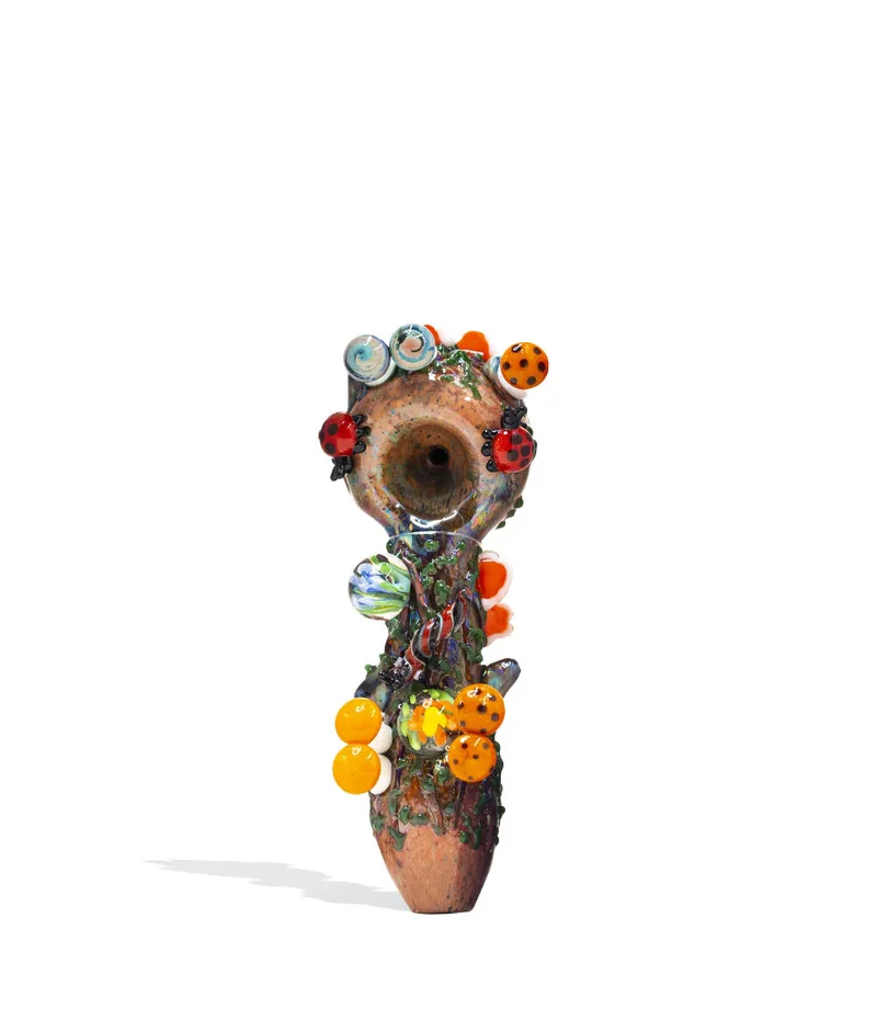 Creepy Crawly Delight Introducing the Enchanted Forest: Empire Glassworks Bug's Life Spoon Hand Pipe, a 4-inch glass pipe brings the mystical world of leaf litter to life with its intricate artistic details. Handcrafted from durable borosilicate glass, this piece features a mossy log adorned with a variety of mushrooms, slugs, and insects, creating a magical scene in a captivating forest. The spoon-style bowl offers a large side for packing your favorite herbs, while the left-sided air carb ensures full airflow control. With its 3-dimensional designs, this pipe provides an ergonomic grip for added security. Embark on a whimsical journey through the Bug's Life and experience the enchantment of the enchanted forest. Empire Glassworks is a well-known brand specializing in creating exquisite glassware and smoking accessories. They have gained popularity for their exceptional craftsmanship, meticulous attention to detail, and stunning handcrafted pieces. Each creation from Empire Glassworks showcases intricate designs and vibrant colors, highlighting their skilled artists' remarkable talent and creativity. What’s Included: (1) Empire Glassworks Bug's Life Spoon Handpipe