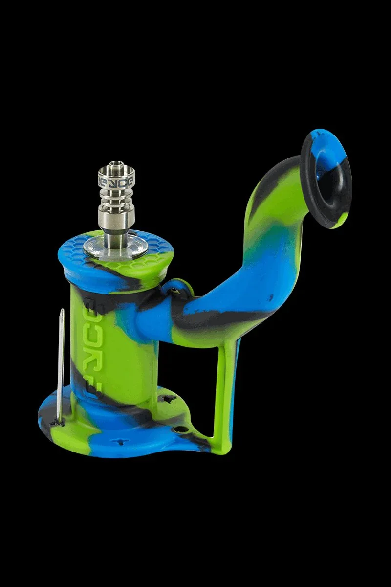 Upgraded from its predecessor, the Rig II boasts a new poker tool, stem cap, and glass collar . Designed to hold the included titanium nail, the 10mm borosilicate glass collar acts a heat barrier, protecting the silicone and extending its life. Equipped with ribs and chamber walls that have been reinforced by an extra 1mm, the Rig II has enhanced stability . In addition to a built-in concentrate container and four tool slots, it features improved durability and strength. 10 mm Glass Collar Upgraded Poker Tool & Stem Cap Reinforced Chamber Walls Built-In Concentrate Container Titanium Nail Included LIFETIME WARRANTY