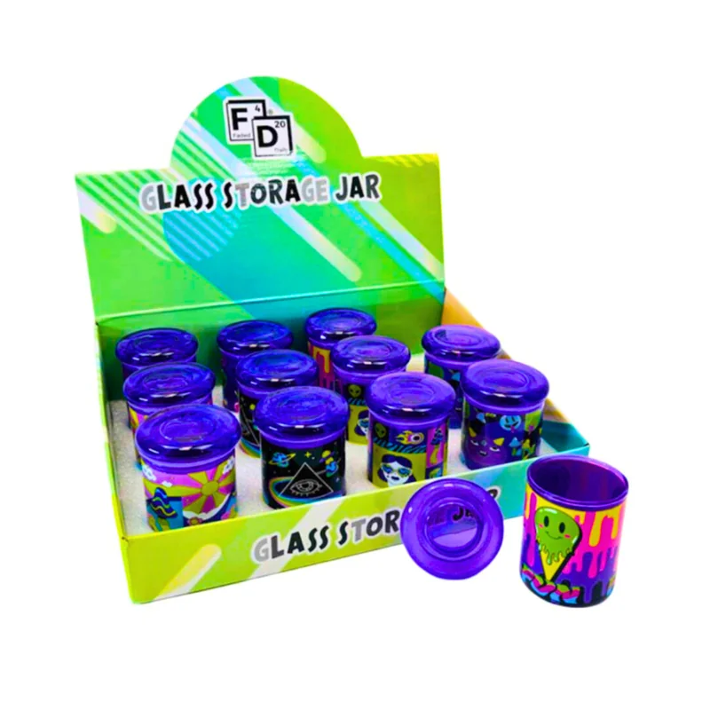 FADED DAILY GLASS STORAGE 3OZ JAR ASSORTED DESIGNS DISPLAY OF 12 Keep products fresh and stylishly stored with the Faded Daily Glass Storage 3oz Jars – Assorted Designs, Display of 12 . Each jar is crafted from durable, high-quality glass with airtight lids to preserve freshness, aroma, and potency. Featuring assorted designs , these jars add personality and retail appeal while offering customers a functional solution for storing herbs, concentrates, or small items. At 3oz capacity , they provid