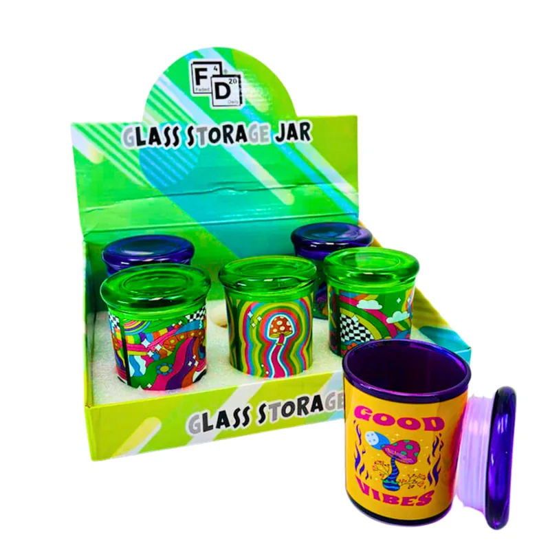 FADED DAILY GLASS STORAGE 6OZ JARS ASSORTED DESIGNS DISPLAY OF 6 Keep products fresh and stylishly stored with the Faded Daily Glass Storage 6OZ Jars – Assorted Designs, Display of 6 . Each jar is crafted from durable, high-quality glass with airtight lids to preserve freshness, aroma, and potency. Featuring assorted designs , these jars add personality and retail appeal while offering customers a functional solution for storing herbs, concentrates, or small items. At 6OZ capacity , they provide
