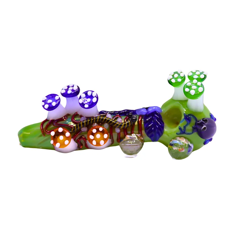 FANCY MULTI MUSHROOM HEAVY HAND PIPE 6" (HP-132) Add a touch of whimsy to your collection with the FANCY MULTI MUSHROOM HEAVY HAND PIPE 6" (HP-132). This unique hand pipe features a colorful multi-mushroom design, crafted with durable, heavy glass for a comfortable grip and lasting quality. At 6 inches long, it offers a smooth, enjoyable smoking experience and makes a great addition to any smoker's collection. Perfect for both personal use and as a gift, this hand pipe combines style and functio