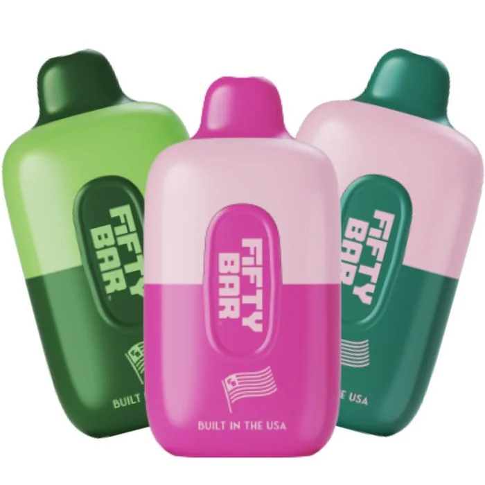Fifty Bar is proud to present the first disposable to be built in the USA with American madeingredients. Extensive research and development has led Fifty Bar to a ground breaking productthat delivers a noticeably better vaping experience. This disposableis filled, assembled, andpackaged with flavors that have been developed from the ground up, right here on US soil. As acompany, Fifty Bar goes above and beyond to use ingredients responsibly sourced fromAmerican manufacturers. With thoughtful touches that separate Fifty Bar from anything else onthe market, you’re sure to Taste the Difference. Mesh Coil. USB-C Charging. 400mah. Anti-Burn Technology. 5% Nic. 6500 Puffs. Buy Fifty Bar 6500 Disposable Retail.