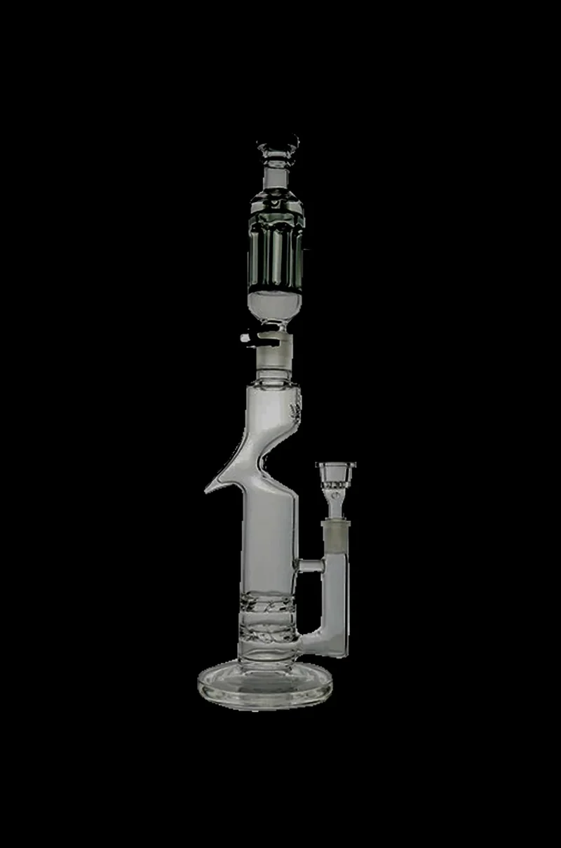 Boasting a sleek and ergonomic design and multi-directional twin turbine percolators , the 15-inch tall Tornado Bong by Freeze Pipe delivers an impressive, top-shelf smoking experience. The Tornado is constructed using the highest quality borosilicate glass, giving it all the durability it needs to withstand the rigors of daily use. This sturdy glass bong is easy to hold and pass with its unique “Z” body shape. The bong’s twin turbine percs spin water in the opposite directions, creating a mini tornado inside the crystal clear glass. Not only is this cool to watch, it also creates lots of tiny bubbles that break up and filter the smoke to remove harshness. The included Revolver glycerin coil chamber ensures you’ll always enjoy big clouds of Arctic cold rips when using the Tornado. About an hour before you smoke, place the revolver coil in the freezer to significantly cool down the glycerine. Once your sesh begins, you’ll immediately notice how much cooler your rips are and they'll stay that way during your entire sesh, whether you’re smoking alone or sharing the bong with friends. The Tornado is outfitted with a 14.5mm female joint and a fixed reinforced downstem, It comes complete with a 14.5mm male flower bowl. From the top of the flared mouthpiece down to the thick round base, the Freeze Pipe Tornado is all about quality, function, and style. This beast of a bong is sure to become your favorite due to its ability to offer a mind-blowing smoking experience unlike anything you’ve experienced before.