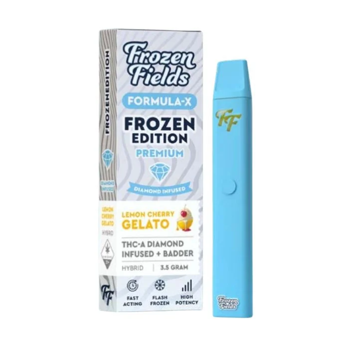 Frozen Fields Formula X THC-A Frozen Edition Vape 3.5G is infused with premium THC-A and Badder for strong, clear effects. Enhanced with diamond infusion, this cartridge delivers smooth, flavorful vapor with each draw. The 3.5G size provides long-lasting sessions, making it ideal for enthusiasts and daily users alike. The high-quality formulation ensures consistent performance, while the sleek design makes it perfect for on-the-go vaping. For those seeking top-tier THC-A experiences, this cartridge is a must-try. Frozen Fields Formula X THC-A Frozen Edition Vape 3.5G Features: Infused with premium THC-A and Badder for strong effects. Diamond-infused for enhanced potency and clarity. Smooth, flavorful vapor in every puff. 3.5g cartridge offers long-lasting sessions. Designed for vape enthusiasts and wholesale buyers. High-quality formulation for consistent performance. Frozen Fields Formula X THC-A Frozen Edition Flavors: Crimson Diesel: Bold and earthy with a diesel-like aroma, offering a strong, invigorating kick. Fruit-Tella: A sweet, fruit-forward blend that’s reminiscent of your favorite candy. Gold Kush: Earthy, with hints of pine and spice, providing a calming, relaxing effect. Lemon Cherry: A tangy and sweet citrus combination with a refreshing, zesty finish. Tropical Haze: A tropical blend with juicy, exotic fruit notes for a bright, uplifting experience. Frozen Fields Formula X THC-A Frozen Edition Wholesale: Frozen Fields Formula X THC-A Frozen Edition Vape 3.5G Wholesale offers a high-potency THC-A cartridge that’s sure to attract discerning customers. With diamond infusion for added potency, these 3.5G cartridges offer long-lasting sessions that deliver consistent quality. This product is perfect for both experienced users and newcomers seeking a premium experience. Buying wholesale allows you to cater to the demand for top-quality THC-A products while benefiting from bulk pricing. Ensure your inventory is stocked with this hi
