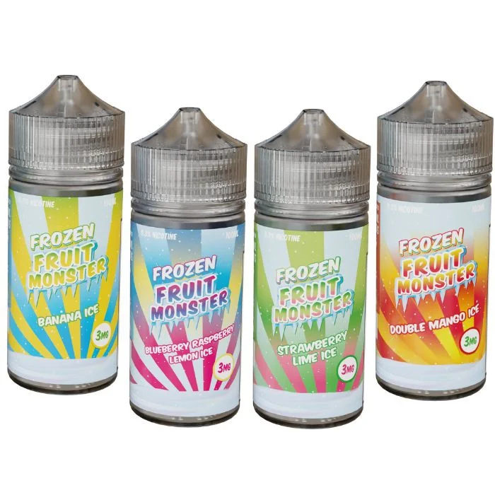 Frozen Fruit Monster E Liquid delivers a vibrant mix of fruits like mango, peach, and guava, finished with a refreshing menthol twist. Available in 0mg, 3mg, and 6mg nicotine strengths, it comes in a generous 100ml bottle. This premium e-liquid is crafted for a consistently rich and flavorful vaping experience, making it a top choice for retailers offering high-quality, refreshing options. Frozen Fruit Monster E Liquid Features: Flavor Profile: A vibrant and juicy blend of top-quality fruits like mango, peach, guava, blueberry, raspberry, lemon, and more, with an icy menthol twist for a refreshing finish. Nicotine Strengths: Available in 0mg, 3mg, and 6mg, catering to a range of nicotine preferences. Bottle Size: Comes in a generous 100ml bottle, ensuring plenty of refills for extended vaping sessions. Premium Ingredients: Crafted with top-quality ingredients to deliver a consistently rich and flavorful vaping experience. Cool and Sweet: Perfectly balances sweet fruity flavors with a cool menthol finish, ideal for vapers who enjoy refreshing e-liquids. Affordable: Offers premium quality at an affordable price, making it accessible for all vapers. Versatile Options: Includes popular blends like Mixed Berry, Mango Peach Guava, Blueberry Raspberry Lemon, and Strawberry Kiwi Pomegranate, all available with or without the icy menthol touch. Frozen Fruit Monster E Liquid Flavors: Banana Ice: A creamy banana flavor with a refreshing menthol finish. Black Cherry Ice: Juicy black cherries with a cool, icy kick. Blueberry Raspberry Lemon Ice: A tart and sweet blend of blueberries, raspberries, and lemons with an invigorating menthol touch. Double Mango Ice: A double dose of ripe, sweet mangoes combined with a chilling menthol breeze. Mango Peach Guava Ice: Exotic mangoes, juicy peaches, and tropical guava, all enhanced with a cool menthol twist. Mixed Berry Ice: A delightful mix of assorted berries, perfectly balanced with an icy menthol finish. Passionfruit