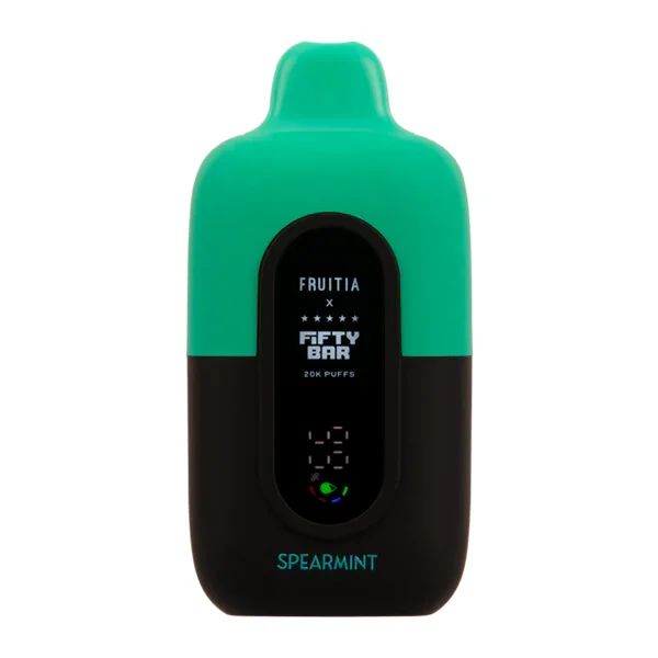 FIFTY BAR 20K VAPE 5-PACK Flavor : The chilly and sharply chilled flavor of spearmint has been perfectly formulated in the Spearmint Fruitia X Fifty Bar 20K. E-liquid contents : 18ml Nicotine Level : 50mg Puffs per Device : 20000 Battery : 800mAh Grade A Battery (Rechargeable via USB-C) Master Case Qty : 200 Dual Parallel Mesh Coil Built in the USA Shop All Fifty Bar Disposable Vapes Browse more disposable vape flavors