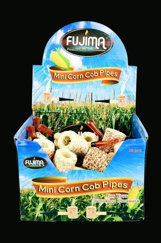 Believe it or not, these Mini Corn Cob Pipes by Fujima are made from real corn! Each pipe measures 3 inches long and features a corn cob bowl combined with a plastic mouthpiece. This display pack contains 36 Mini Corn Cob Pipes.