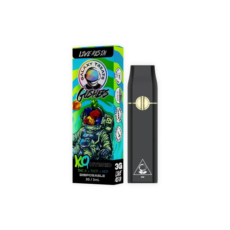 Juicy, candy-sweet flavor meets knockout potency in the Gushers 3G Live Resin Disposable. Powered by a high-impact blend of THCA, THCP, and PHC, this all-in-one vape delivers deep relaxation, serious munchies, blissed-out mood boosts, and next-level sleep support. With a Launch Intensity of 100, it's a full send into euphoric calm. Stay Charged. Stay Elevated. Our 3-gram Galaxy Treats disposable comes equipped with a USB-C charging port on the bottom of the device—so you can keep the good vibes going without missing a beat. When you’re low on power, just plug in and prepare for liftoff.