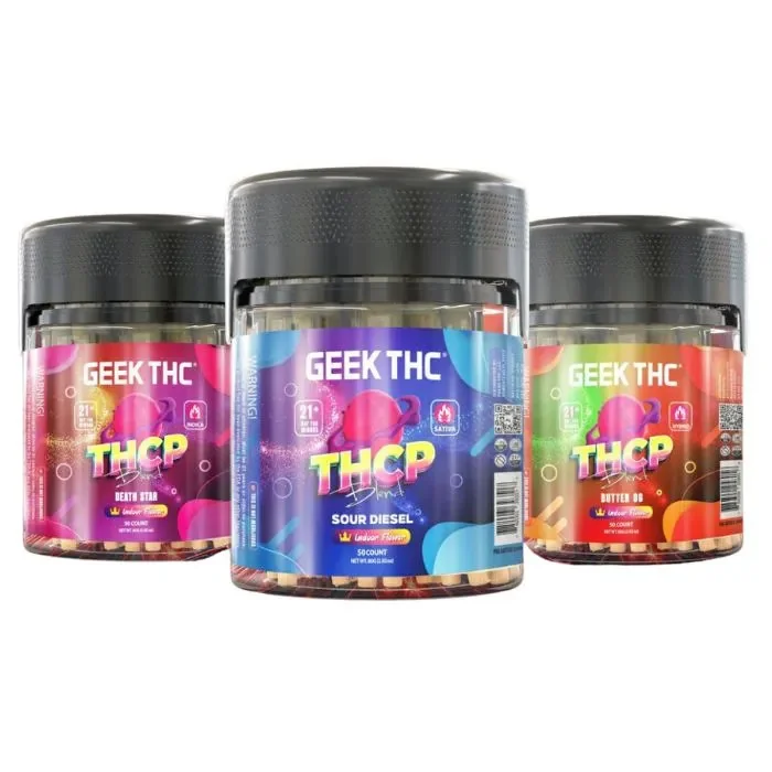 Upgrade your smoking experience with Geek THC-P Pre-Rolls! Each 2-gram pre-roll is packed with potent, indoor-grown, USA-cultivated THC-P flower, delivering smooth, flavorful hits every time. This 50-count pack offers long-lasting enjoyment with a selection of top-tier strains to suit every preference. Whether you seek relaxation, focus, or an energizing buzz, Geekd THC-P Pre-Rolls have you covered. Key Features: 2-Gram THC-P Pre-Roll for powerful effects 50 Pre-Roll Pack for extended use Indoor-Grown, USA-Cultivated THC-P Flower Slow-Burning & Smooth Smoke Available Strains: Butter OG – Buttery smooth with earthy undertones, perfect for deep relaxation Death Star – A bold, heavy-hitting strain with diesel and skunky notes Green Crack – Energizing citrus and tropical flavors for a daytime boost Sour Diesel – Classic pungent diesel with a cerebral, uplifting high Get Geek THC-P Pre-Rolls today and experience premium quality with every puff!