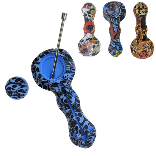 4.5" Silicone Water Transfer Design Spoon Hand Pipe w Poker (MSRP $40.00)