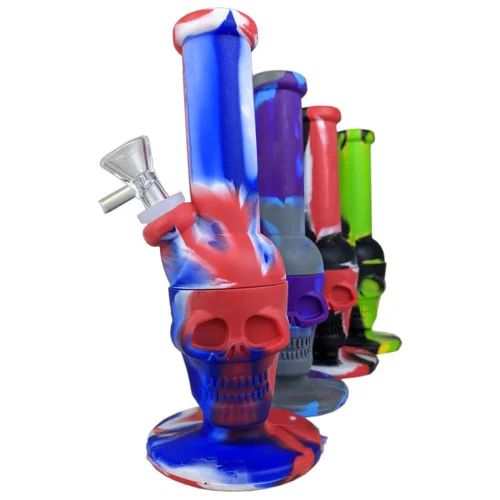 Wholesale/Products/8.3" Silicone Skull Straight Water Pipe - with 14M Bowl & 4mm Banger (MSRP $25.00)