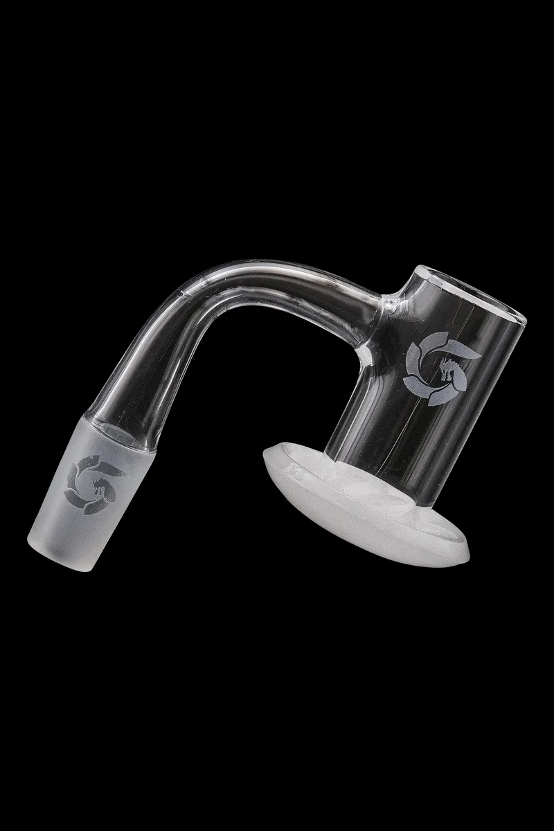 This 14.5mm male quartz banger from Glasshouse Quartz is 20mm wide. The generous depth of the banger allows you to dab big slabs while providing ample room to toss in a couple of terp pearls so they can work their magic. The banger's hurricane airflow intake will spin all those tasty terps so your hits are full of flavor. The beveled top ensures your carb cap forms a tight seal as you manipulate it to maximize airflow. This deep 90-degree banger is made of quality quartz. Its unique design creates a slurping action paired with a hurricane-like vortex so you can enjoy some big fulfilling rips. When you use this banger, you'll watch in awe as all your concentrates are slurped up and vaporized for top-notch flavor and vapor production.