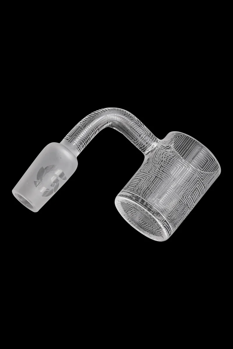 Dab with style and improved efficiency with the Squares Trippy Edition Full Quartz Banger Kit by Glasshouse Quartz . Included in the kit is a 25mm wide banger with a cool etched squares design that's equipped with a 14.5mm male joint. The kit also comes with 2 terp pearls that work in unison with the included flat-style carb cap that gives you complete airflow control. The banger's joint is adorned with the Glasshouse Quartz logo to remind you of its quality. This kit is perfect for getting more efficiency, flavor, and enjoyment from all your dab sessions which is the dream of everyone who dabs!
