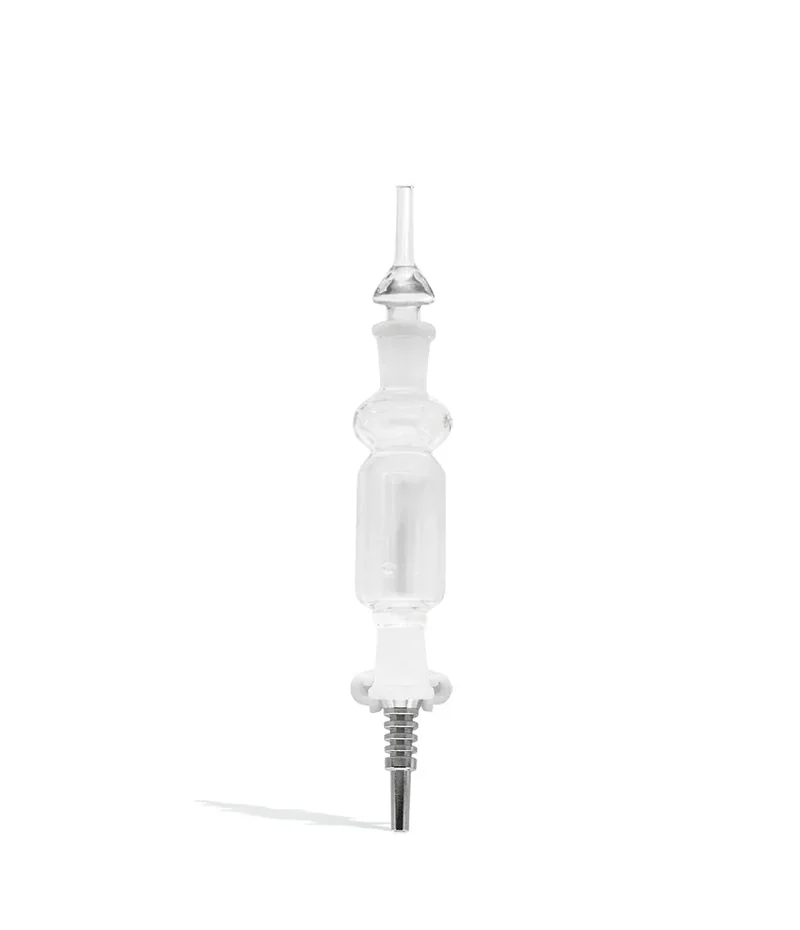 Buzz, Buzz, Puff You can fine-tune your dabbing experience with the 19mm Ti Tip Nectar Collector Set. This comprehensive kit is your ultimate companion for on-the-go concentrate sessions, equipping you with everything you need. The nectar collector, crafted from durable borosilicate glass, serves as both a water chamber and a detachable neck, offering versatility. It includes a quartz tip and titanium, designed to handle daily use effortlessly. Just like with a standard dab rig, you'll need to torch the nail or banger to heat it up. After cooling, the 19mm Ti Tip Nectar Collector comes into play. Simply dip the tip into your concentrate dish to create a robust inhale of potent vapor through the water chamber, delivering a consistently smooth dab after dab. With its incredible performance, this set becomes an ultimate addition to your dabbing toolkit. This collection is designed to enhance your vaping experience by providing efficient devices and tools for every session you enjoy. What's Included: 19mm Ti Tip Nectar Collector (1) Glass Tray (2) Clips (1) Stem (1) Titanium Tip (1) Quartz Tip