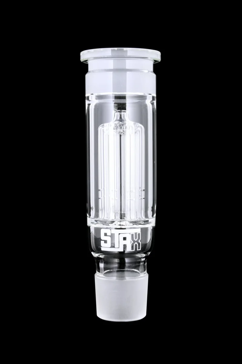 Add this tree perc favorite to your STAX build. The STAX collection from Grav Labs is the first modular water pipe series available on the market. That means you can tailor your pipe yourself, for a personal fit. Add percolation, dial in airflow, and build your bong as tall as you want. All with the same quality glass you expect from Grav Labs. The tree perc is one of the favorites on the market. 8 arms branching down into the water with outward facing cuts. All around percolation and diffusion, even if you need to tilt your pipe. The perc is mounted to the bottom of the chamber for durability and longevity.