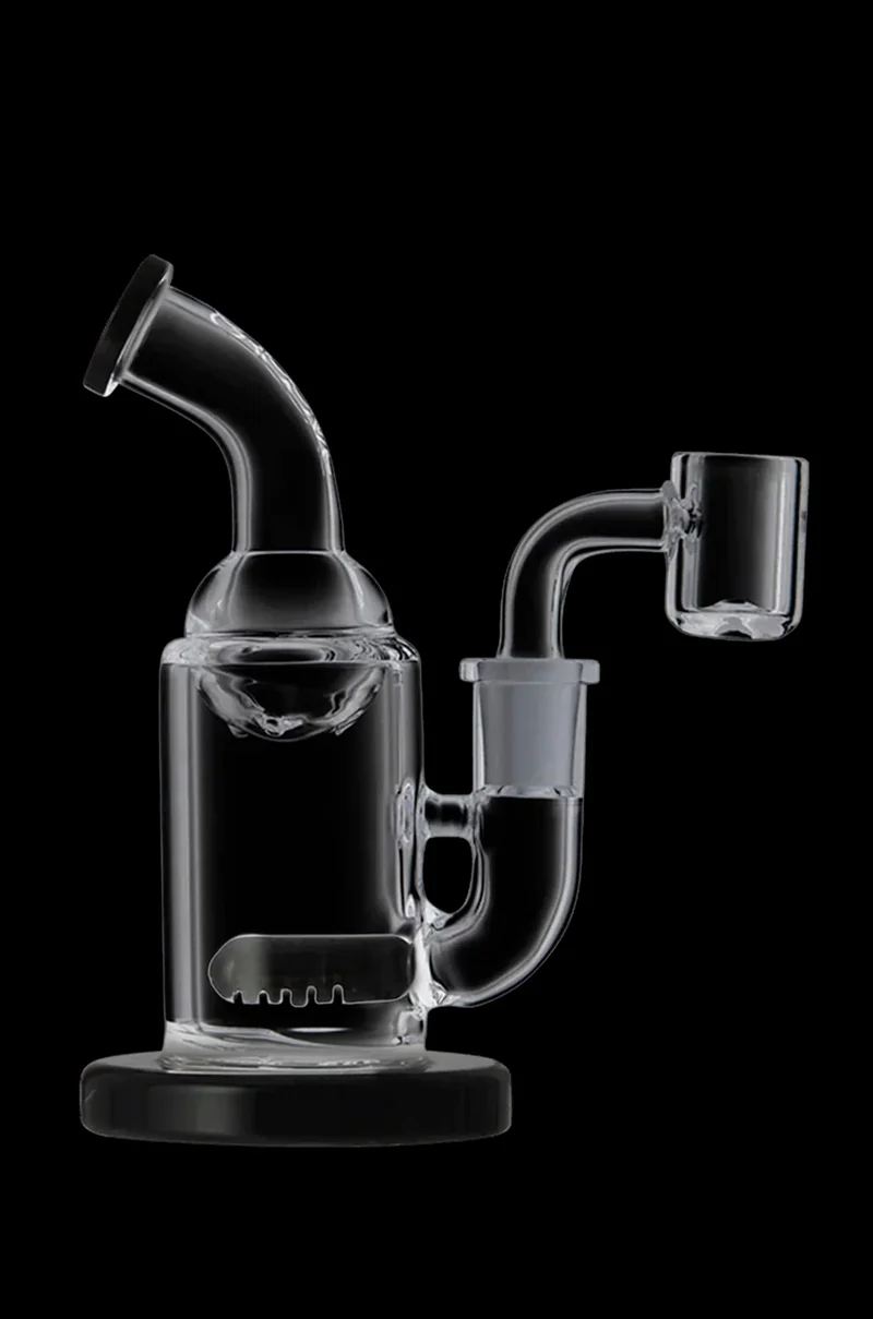 When it’s time to get your groove on and enjoy your favorite cannabis concentrates, reach for the Mini Tube Dab Rig by Groove . This micro rig is made from high-quality glass, giving it plenty of durability for daily use. It looks great too with its straight tube design, curved neck, and thick round base in black. The Mini Tube is a compact piece that fits easily into your backpack so you can take your concentrate game on the road. It’s outfitted with a female joint and a fixed reinforced downstem that leads to a black inline percolator. The perc works by building up lots of tiny bubbles to smooth and cool your rips. The Mini Tube comes ready for action right out of the box with a 90-degree male quartz banger with a deep bucket. If you’re looking for a high-quality mini rig that delivers smoothness with every rip, you can’t go wrong with this little beast by Groove.