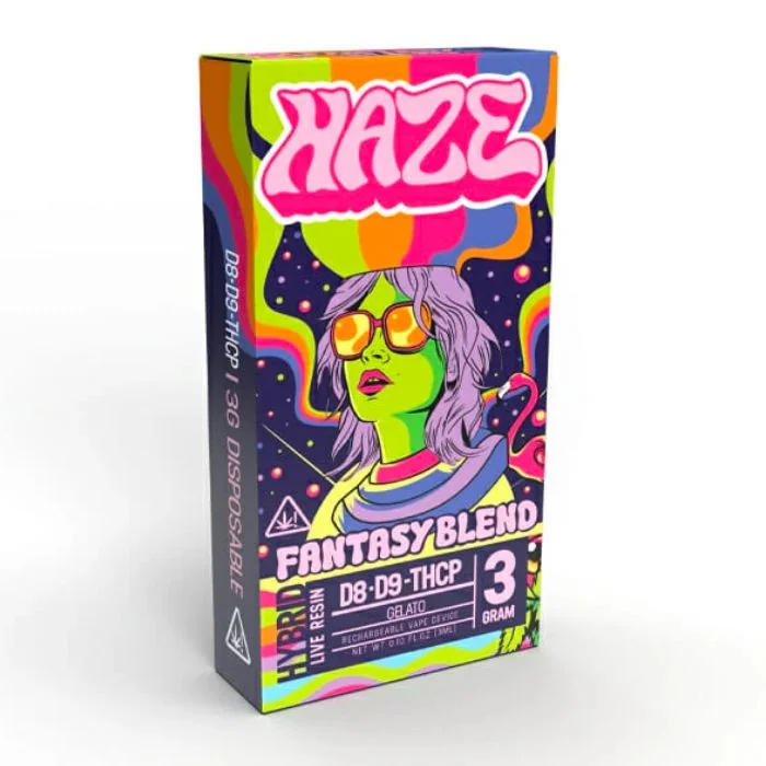 Are you ready to enter a world of fantasy and imagination? Introducing the HAZE Fantasy Blend, a dreamy and otherworldly hybrid strain live resin vape device that will transport you to a realm of pure wonder. This rechargeable vape device comes packed with 3 grams of a unique blend of Delta 8, and THCP, all expertly crafted to create a one-of-a-kind high that will leave you feeling euphoric, relaxed, and completely at ease. The gelato flavor adds a touch of sweetness to the overall experience, making it a delicious and enjoyable way to consume your cannabis. Imagine yourself in a land of ice cream and candy, where every lick and inhale brings a new burst of flavor and aroma. With the Haze Fantasy Blend, every inhale is a spell, every exhale is a magic, every moment is a fantasy. The HAZE Fantasy Blend is perfect for those looking to escape reality and explore the depths of their imagination. Whether you are looking to unwind after a long day or want to delve into the depths of your mind, this vape device will take you there. The effects of the blend are balanced, providing an uplifting and energizing high that is perfect for creative endeavors, exploring new worlds, or just enjoying a lazy day at home. So why settle for a mundane and dull cannabis experience when you can have a fantasy and dreamy one? The HAZE Fantasy Blend is the perfect choice for those looking to elevate their cannabis game and explore new realms of imagination. Order yours today and get ready to enter a world of wonder.